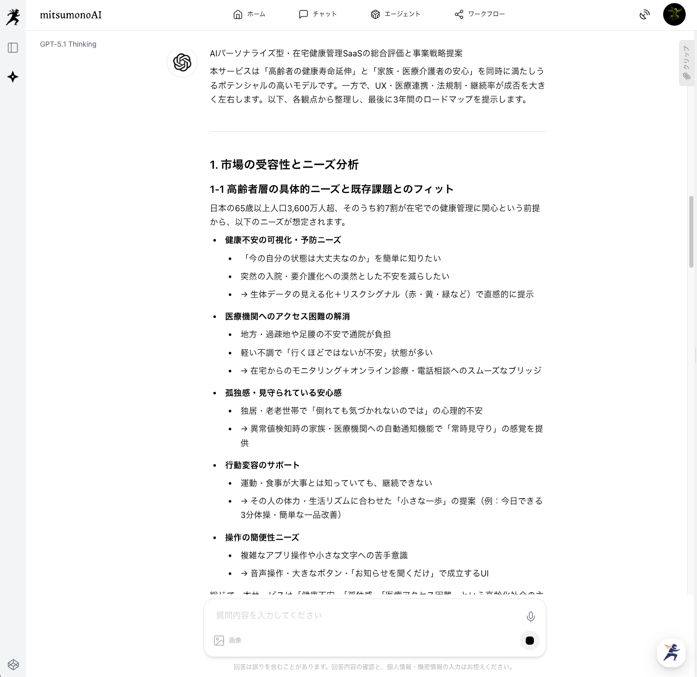 この壁打ちを通じて、多岐にわたる複雑な情報を統合し、論理的かつ体系的な思考で、実現性の高い革新的なビジネスモデルとその戦略を導き出すことを期待しています。」