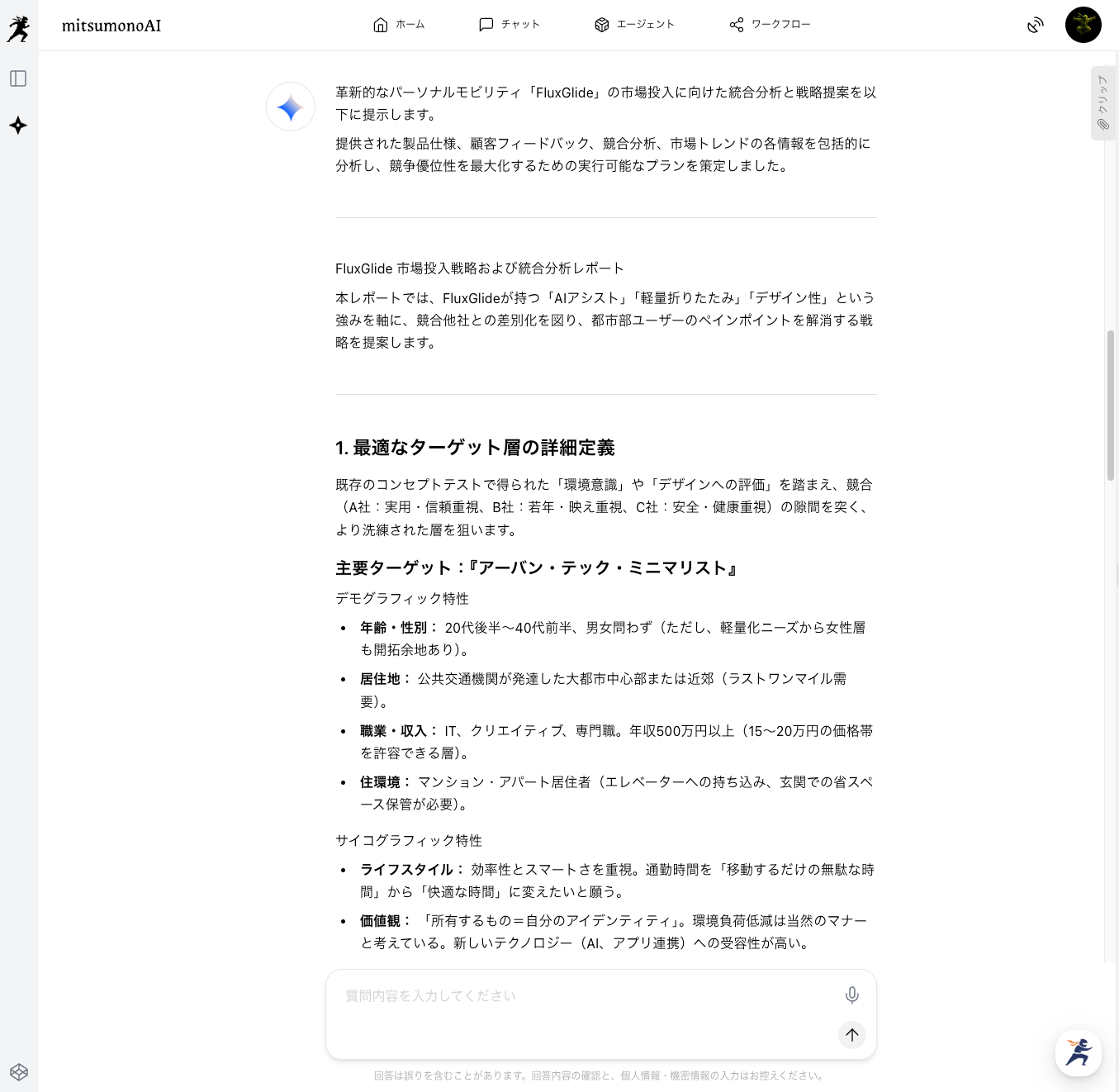 例1:複数の製品動画、顧客レビュー、競合分析レポートから、市場投入戦略を策定