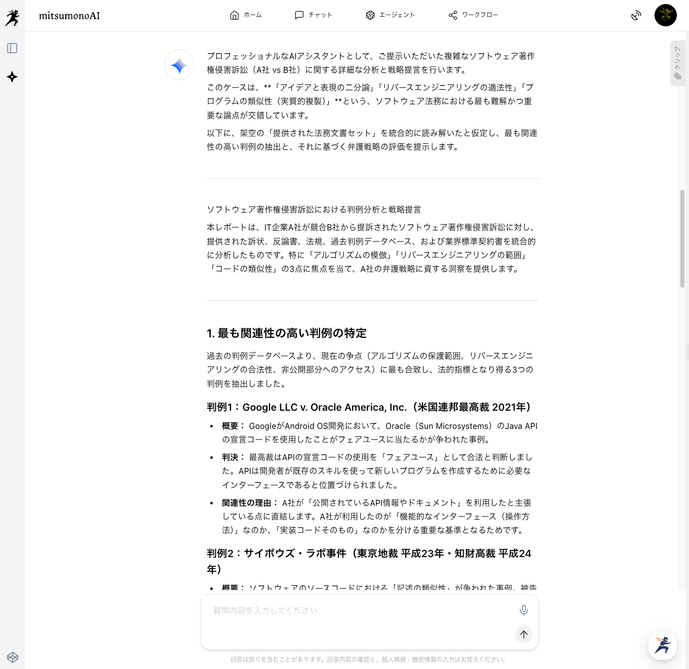 例2:大規模な法務文書セットから特定の判例を抽出し、現在のケースへの適用可能性を評価