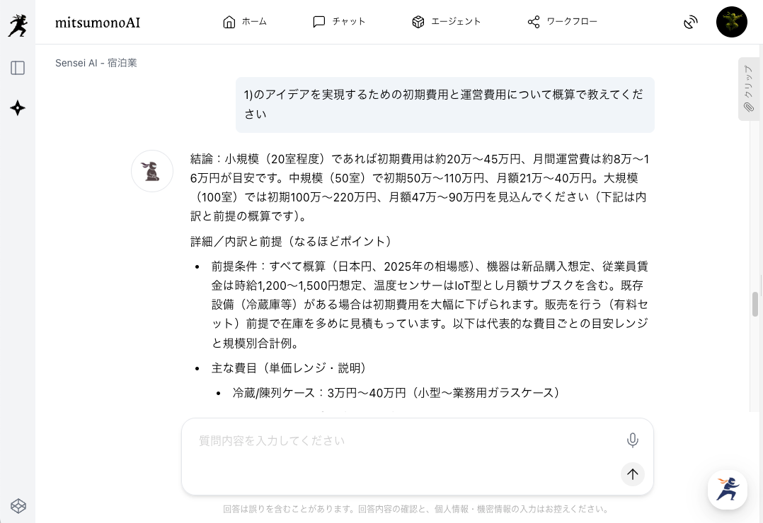 Sensei AIから得られた提案内容を活用して、実際に実行できるサービスや企画を立案します。
