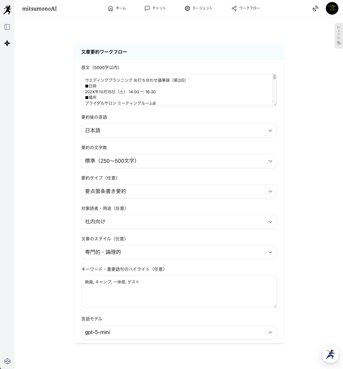 ▶ 文章要約ワークフロー