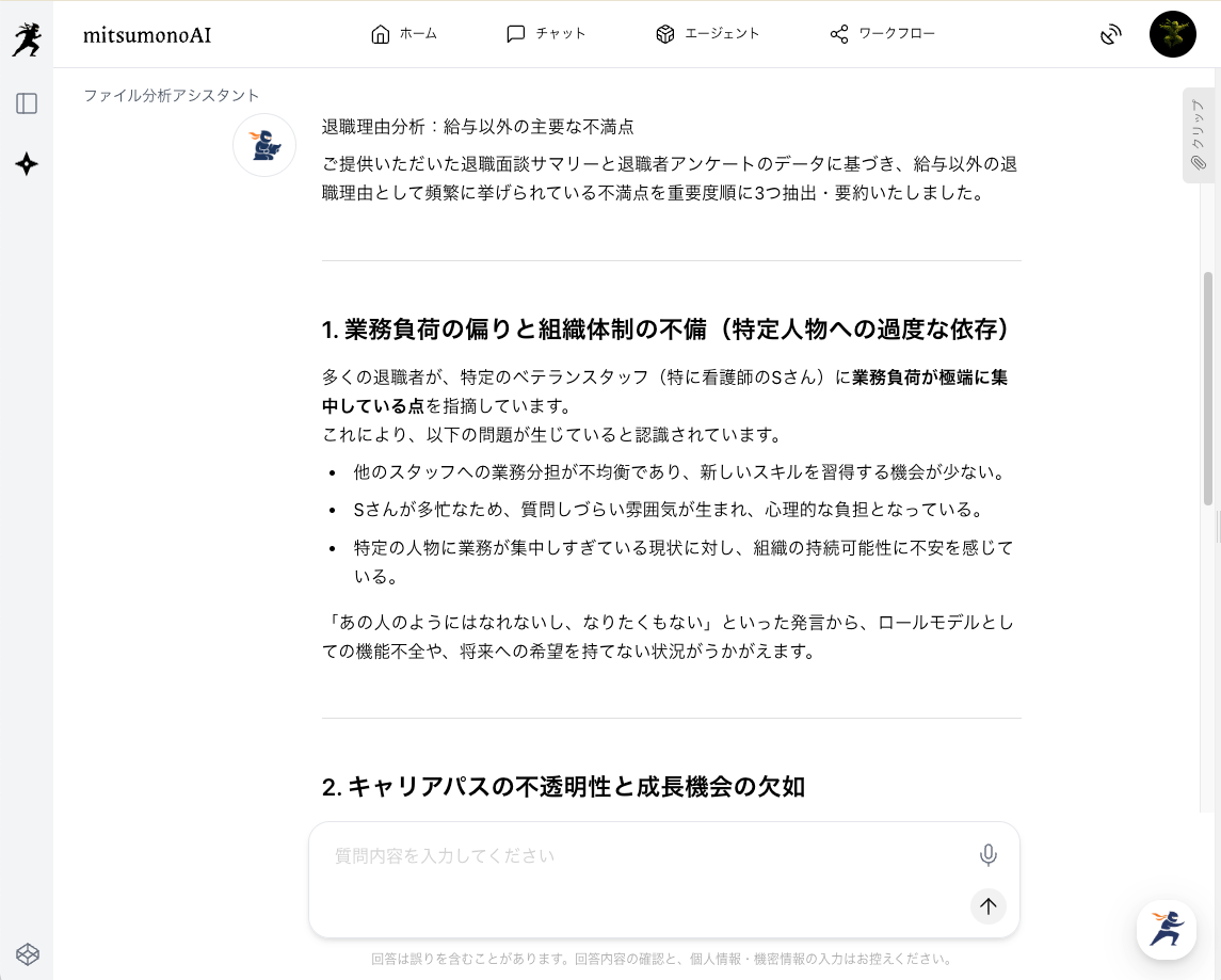 給与だけの問題ではなく、特に鈴木さんへの業務負荷が、他のスタッフからも明確なリスクとして認識されていたことがわかりました。