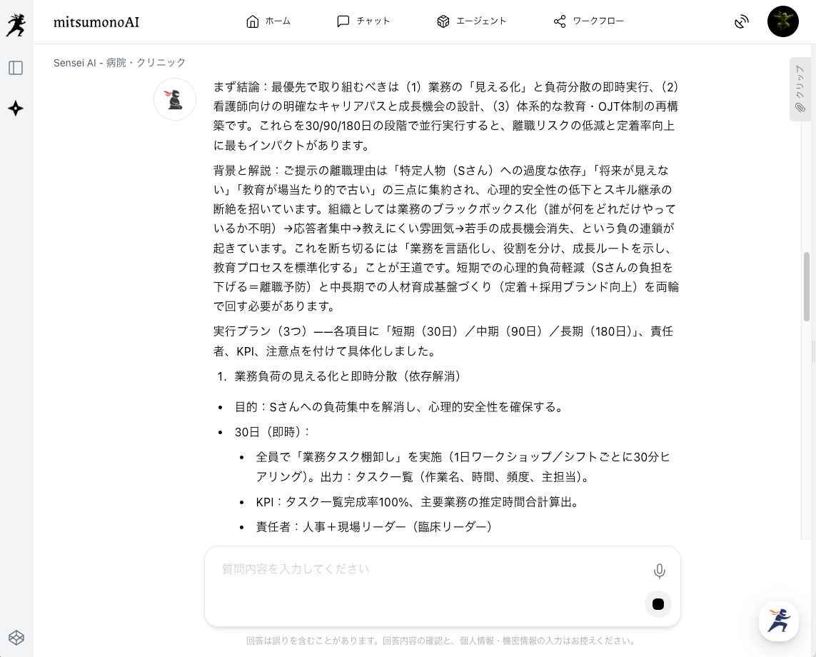 美咲さんは最も効果的で、院長や現場を説得しやすい「最初の一手」を知るために、これまでのAI分析結果をすべて統合し、具体的なアクションプランの提案をAIに求めました。