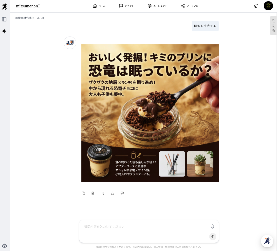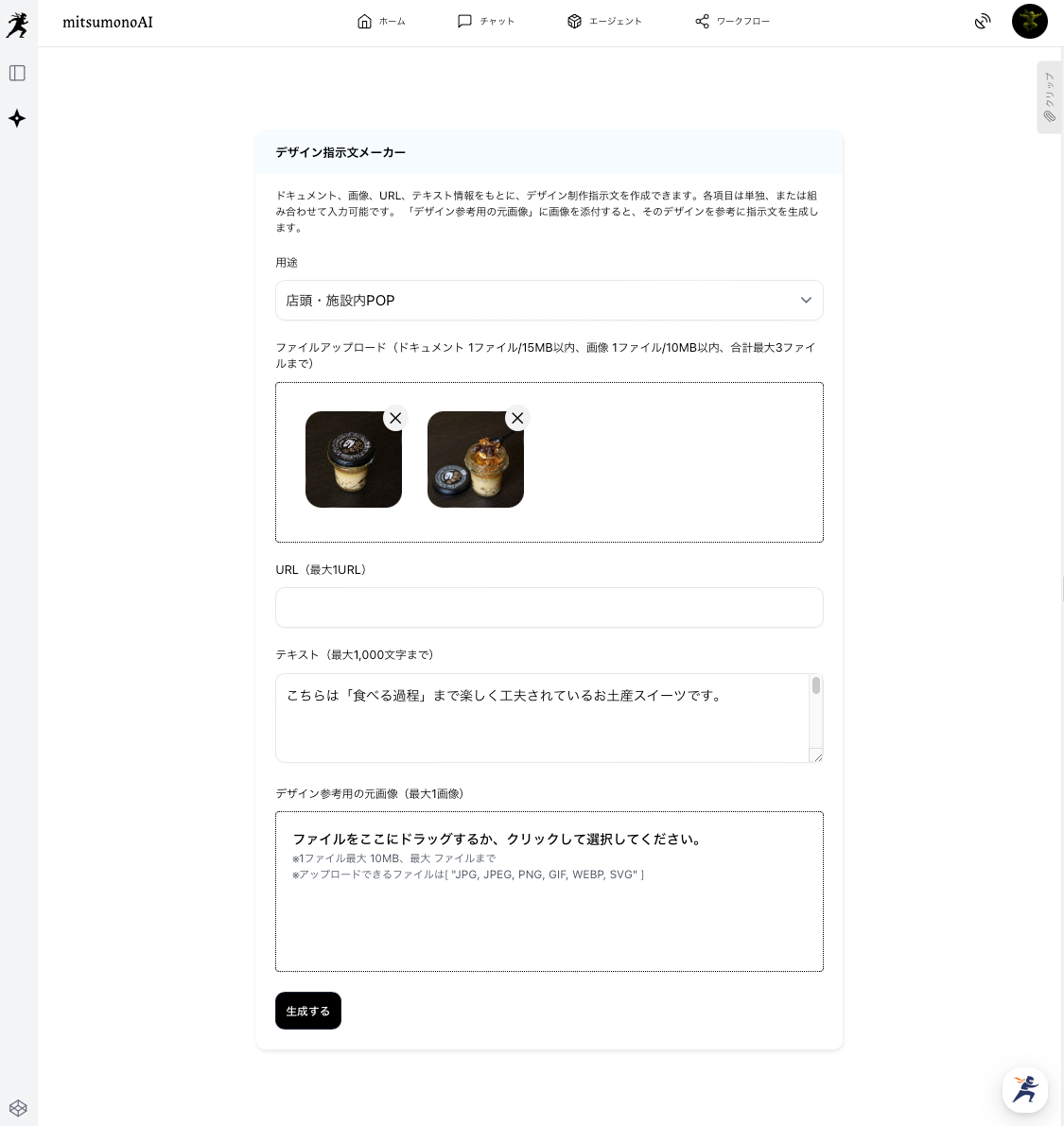 mitsumonoAIを活用すれば、写真と短い言葉を用意するだけで、AIがデザインのプロとして最適なビジュアルを提案してくれます。