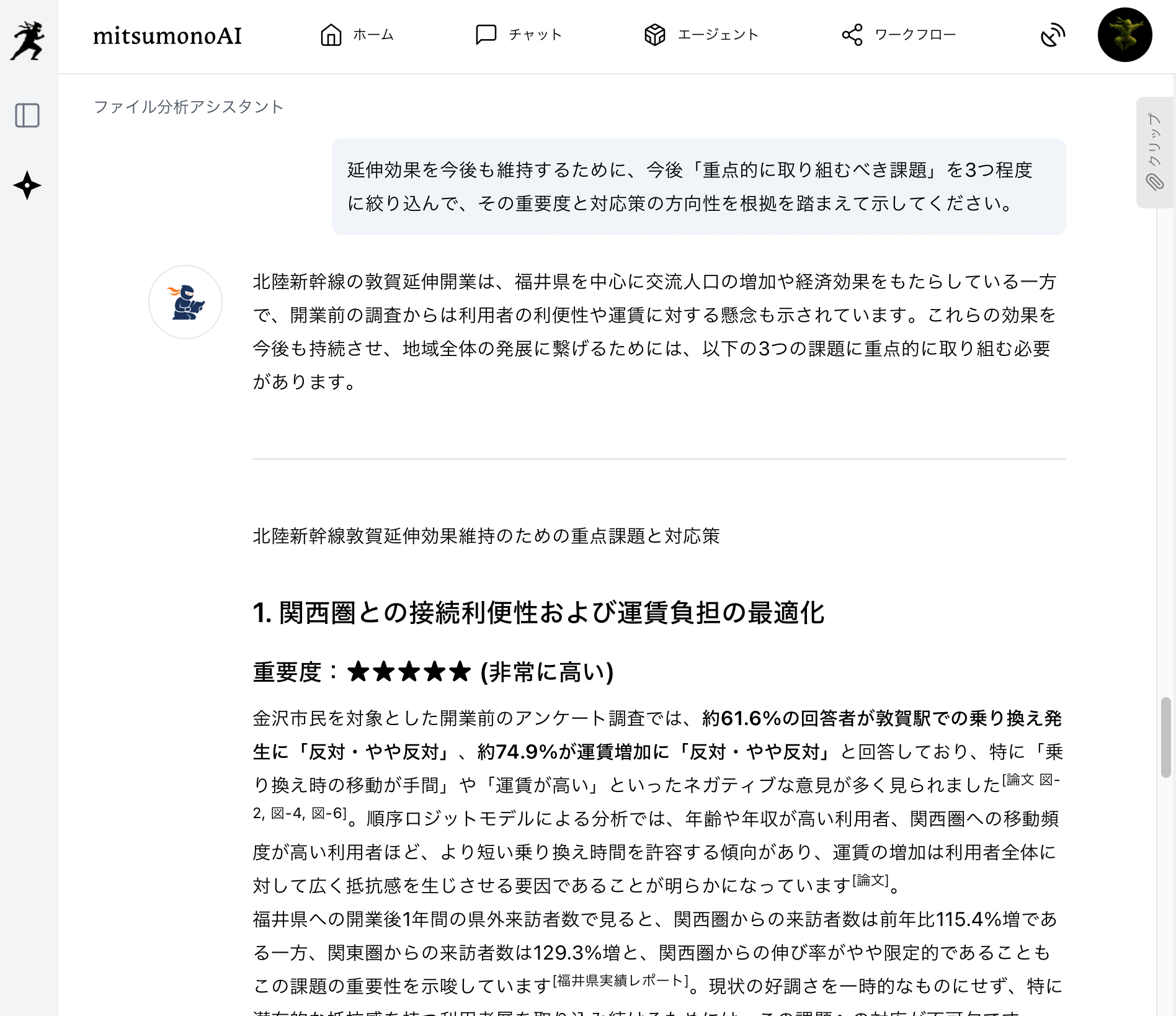 AIを活用すれば、膨大な調査資料の収集から分析までを、短時間で客観的かつ効率的に行えます。本記事では「北陸新幹線敦賀延伸」を事例に、資料収集から多角的な現状分析、施策や課題の抽出までのAI活用法を紹介します。