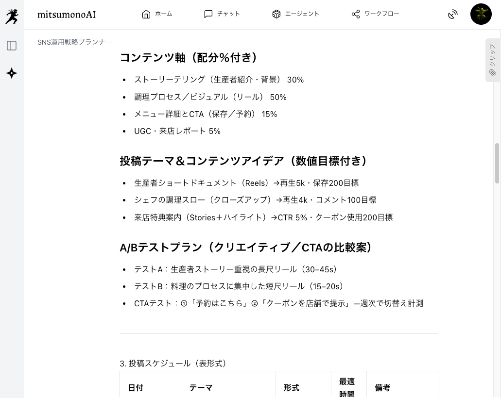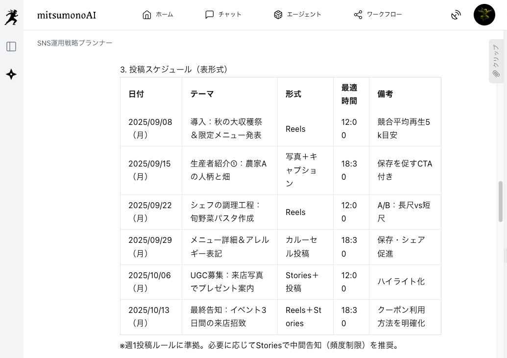 - SNS運用の最適化: AIがターゲット層に響く訴求ポイントを考察した上で発信戦略を策定するため、集客効果が最大化されます。