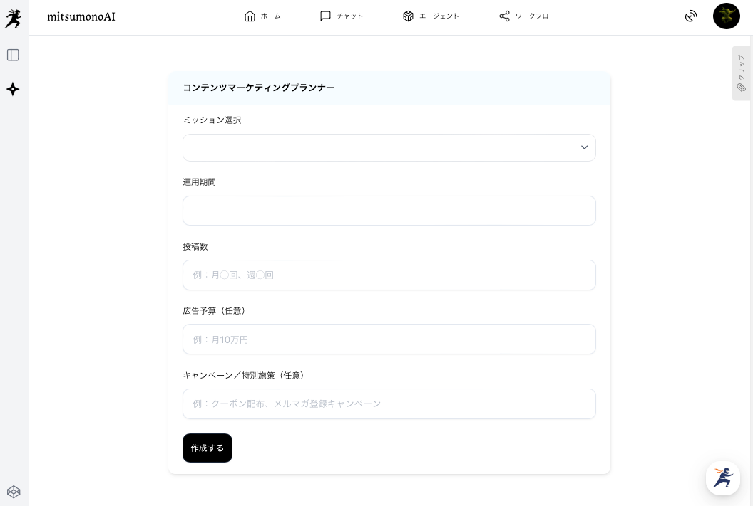 - コンテンツの一貫性確保: ミッションの情報に基づいてコンテンツプランが出力されるため、担当者個人の感覚に左右されず、事業の目的に沿った一貫性のある質の高いコンテンツ企画が可能です。