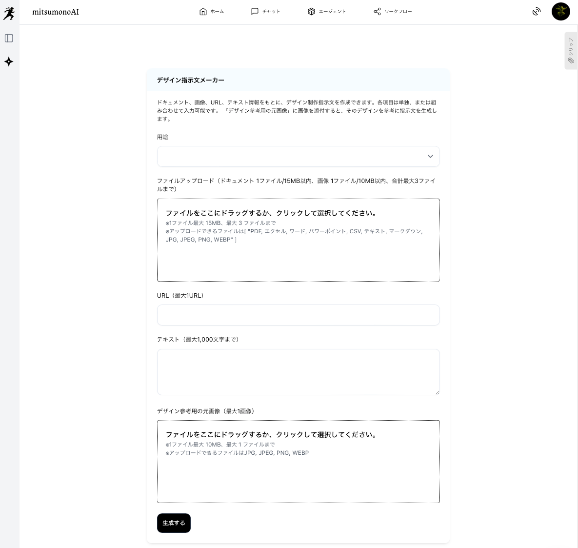 - デザイン案の迅速な作成: 企画書や記事URLなどからデザイン指示文を生成し、それを基に短時間でビジュアルイメージを自動作成。