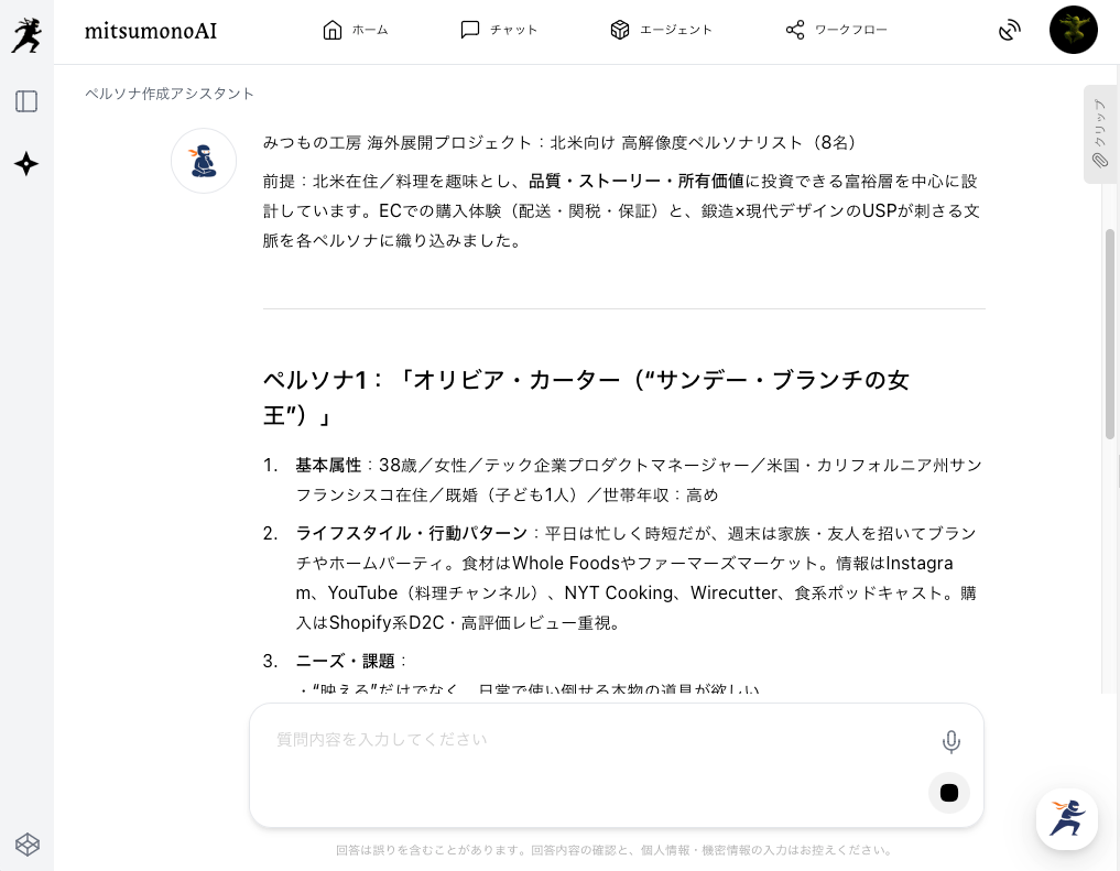 本記事では、この課題を解決するため、mitsumonoAI「ペルソナ作成アシスタント」を活用する手法をご紹介します。あなたの事業がその工芸品の価値を届けるべき「まだ見ぬ海外ファン」の人物像を「ペルソナ」として具体的に描くことで、海外戦略の方向性が格段に考えやすくなります。