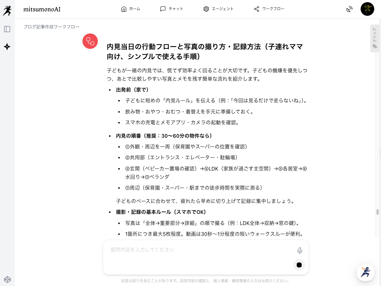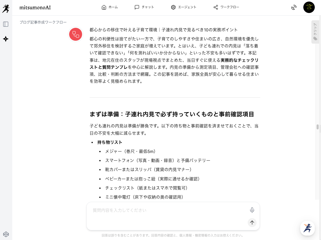 今回はコンテンツカレンダーのうち「子連れ内見のチェックリスト」のテーマのブログ記事を作成してみようと思います。