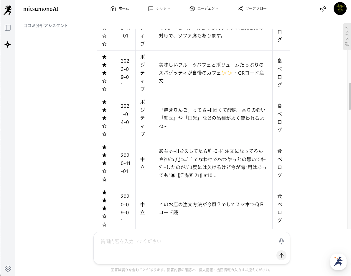 ロコミ分析アシスタントで、お客様が新しいメニューや接客をどう感じたか、生の声を拾います。
