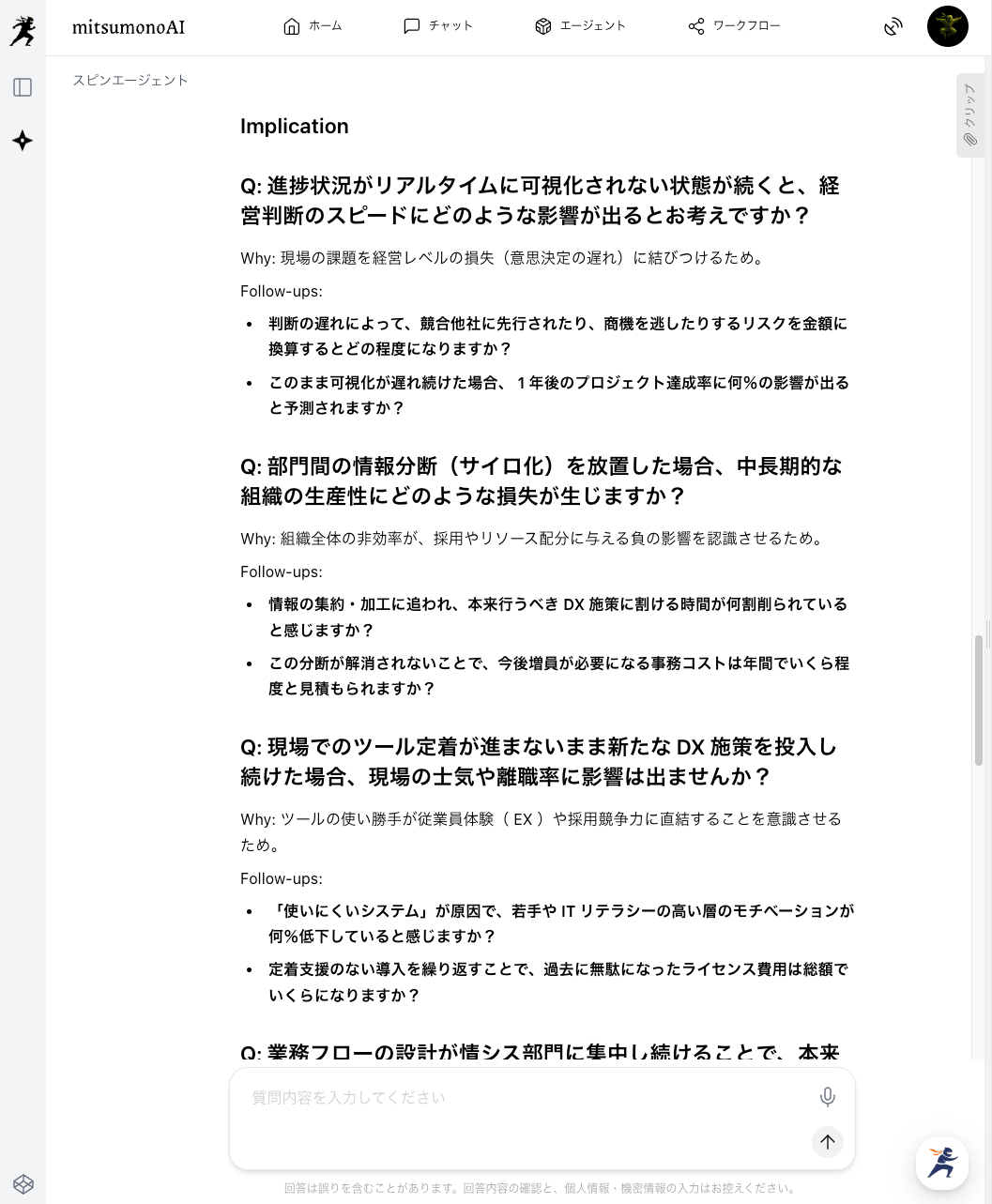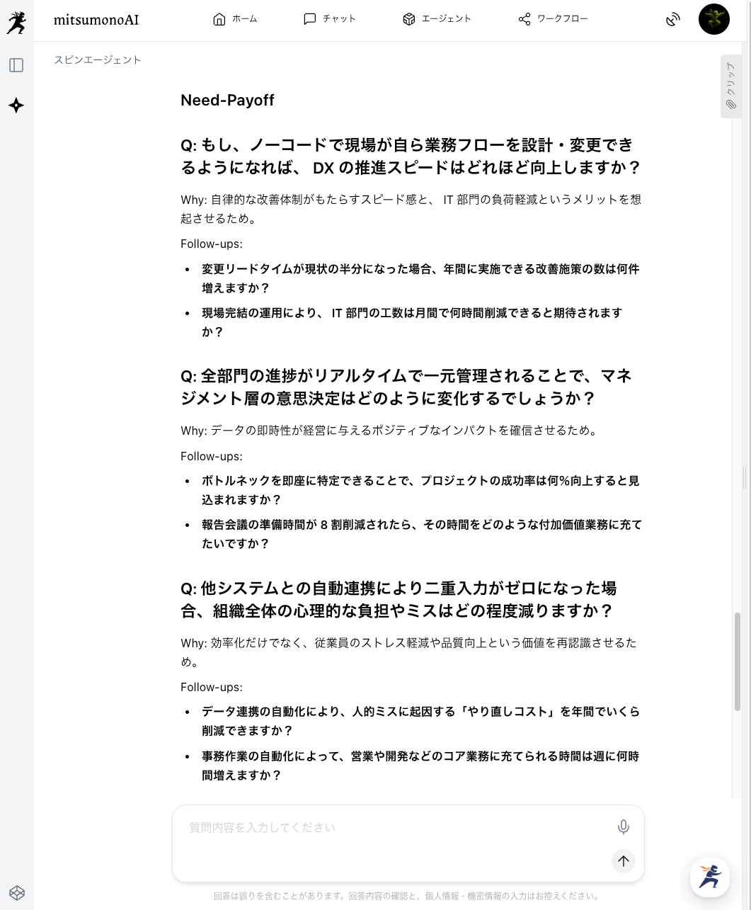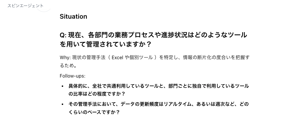 - 生成されたSPIN質問と深掘り項目を確認する(STEP2:アウトプット)