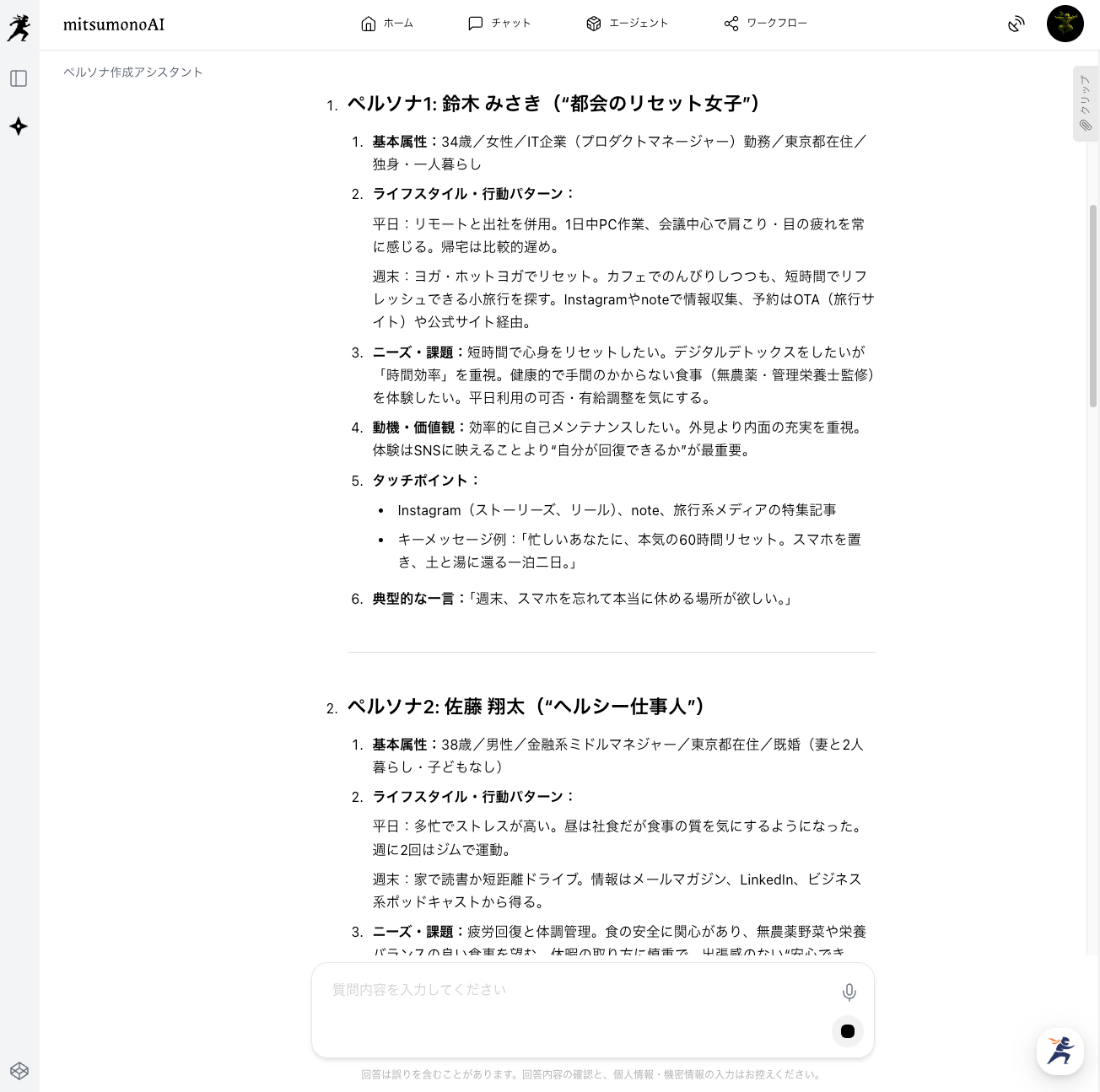 - 漠然としたターゲット層を、具体的な価値観やライフスタイルを持つ「一人の人間」として描き出し、顧客インサイトの深掘りを支援します。