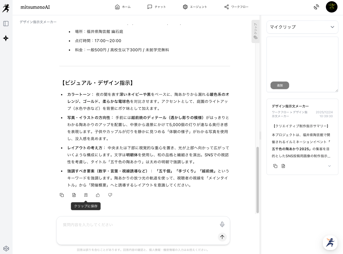この指示文をクリップに保存して次のステップへ進みます。、必要に応じて修正を行ってください。