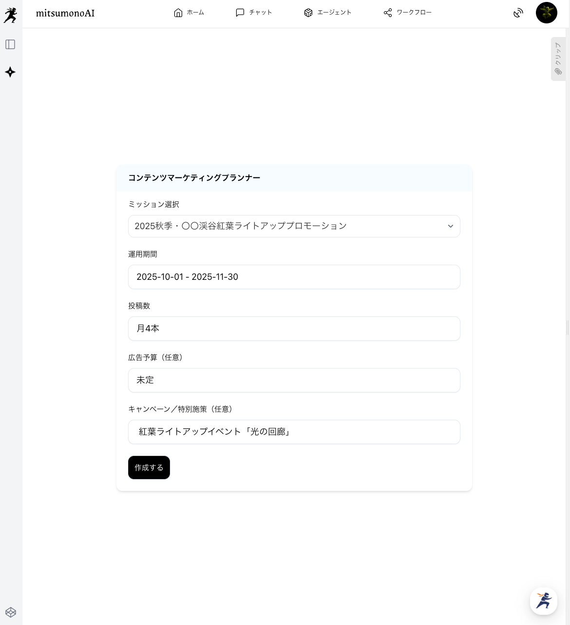 ここでは、地方の観光協会が、「秋の紅葉ライトアップ」のイベント情報を、ブログとショート動画の両方で発信するケースをシミュレーションします。