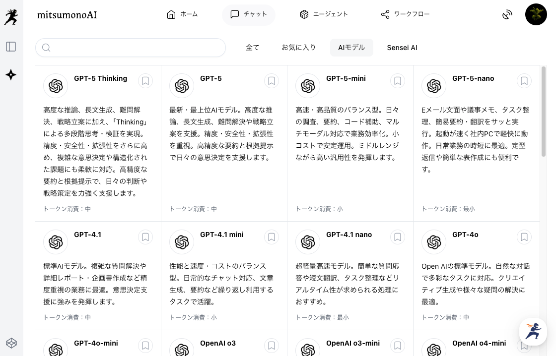 OpenAIの最新AIモデル「ChatGPT-5シリーズ」をmitsumonoAIに搭載いたしました。従来のモデルと比較して、より高度な推論能力、長文理解、表現力、そして多角的な情報処理能力が飛躍的に向上しています。