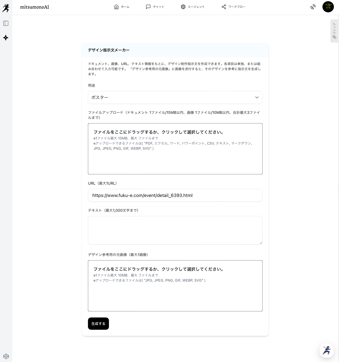 まずは、お手元にあるイベント告知のURLを使って、デザイン指示文メーカーに読み込ませてみませんか?AIが提案する驚くほど的確なデザイン案を、ぜひ体感してみてください。